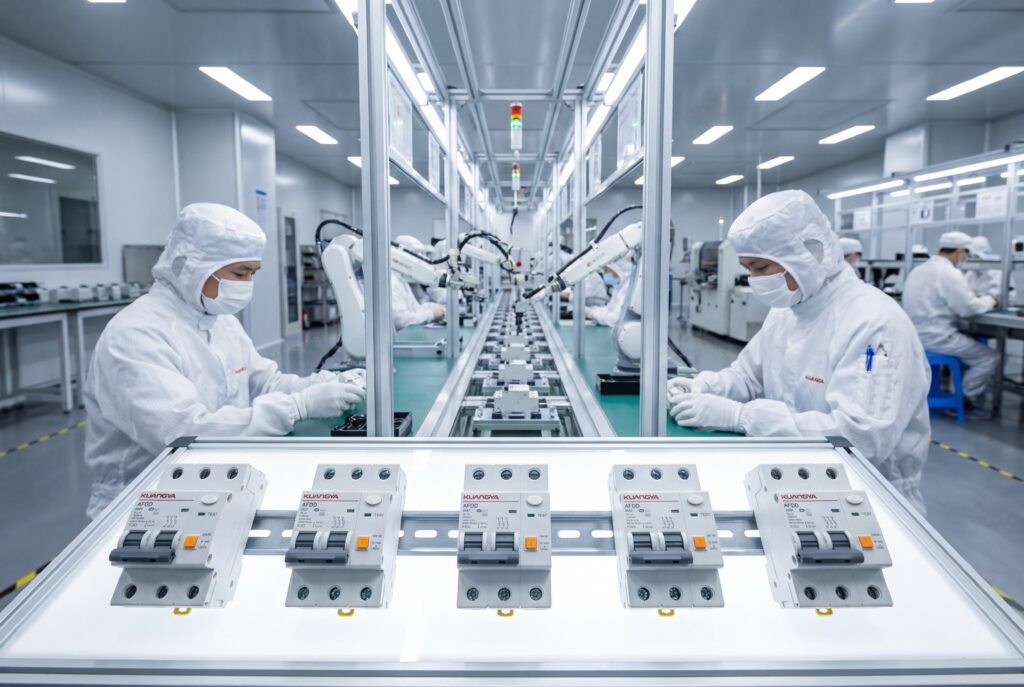 An RCBO neatly combines the functionality of both an MCB and an RCCB into a single, compact device. It provides protection against overloads, short circuits, and earth fault currents. This makes it an ideal choice for protecting individual final circuits where both equipment and personnel safety are critical, such as outlets powering portable tools on the factory floor or in maintenance areas.