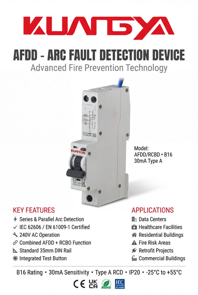| Hazardous Areas (Flammable Dust/Gas) | Electrical sparks causing ignition, fire. | AFDD + MCB/RCBO | Arc faults are a primary ignition source. An AFDD is the only device that can detect these micro-sparks from loose connections. It should be paired with an MCB or RCBO for overcurrent and shock protection. |
